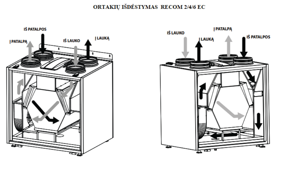 - Rekuperatoriui reikalingas kondensato nuvedimas.