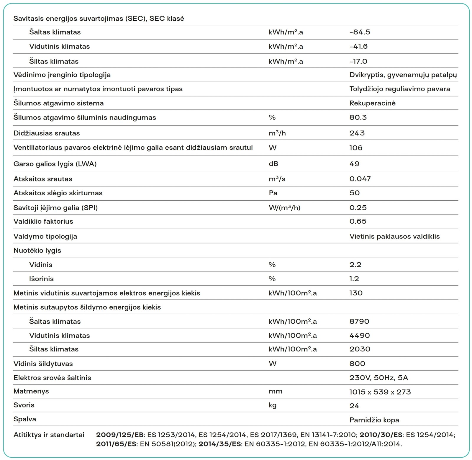 Visos detali techninė informacija čia – Techninės charakteristikos