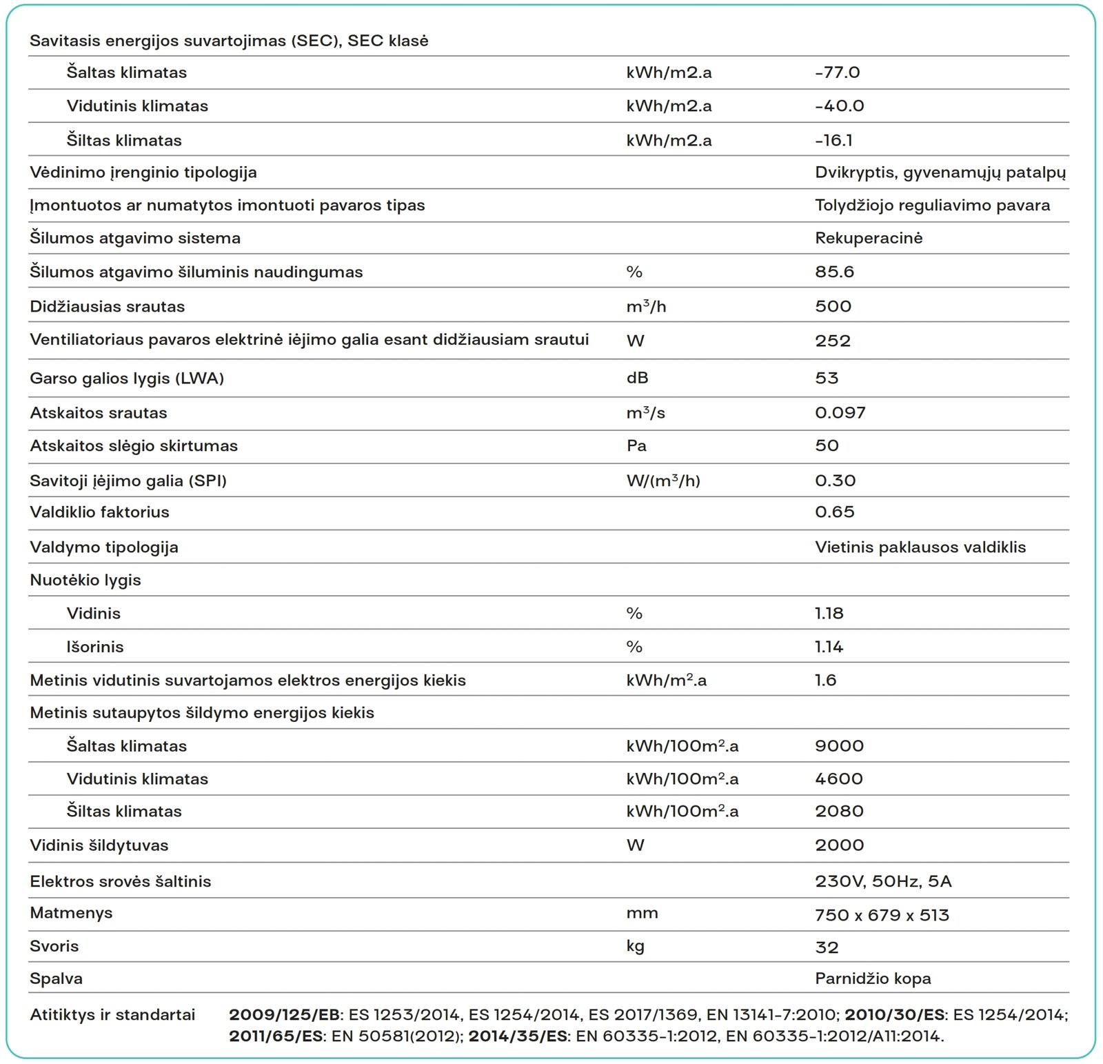 - Šilumogrąžos naudingumas – 85.6%