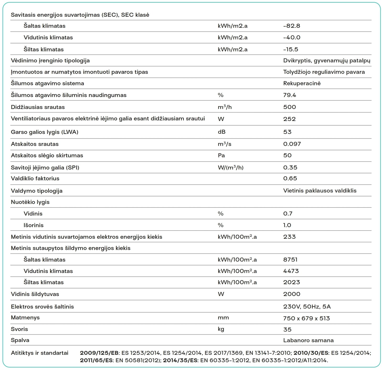 - Šilumogrąžos naudingumas – 79.4%